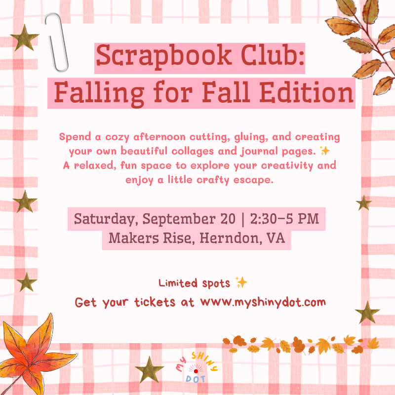 I’m so excited to host another scrapbook club meeting! 💖 Join me on Saturday, September 20th from 2:30–5 PM for a cozy, paper-filled afternoon. We’ll chat, cut, glue, and play with papers while the air starts to feel like autumn.